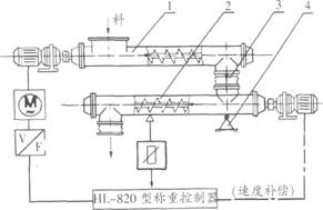 值得注意的是有的給料和稱(chēng)重計(jì)量采用同一管螺旋,即通過(guò)調(diào)節(jié)稱(chēng)重螺旋轉(zhuǎn)速來(lái)調(diào)節(jié)控制瞬時(shí)給料量。但從實(shí)踐證明,由于物料物性和工況等變化,螺旋轉(zhuǎn)數(shù)與其物料料流速度沒(méi)有穩(wěn)定線(xiàn)性關(guān)系,此時(shí)螺旋轉(zhuǎn)數(shù)(n)往往不能代表料流速度(v)。這種方案雖然簡(jiǎn)單,但難以保證足夠的計(jì)量精度和料流穩(wěn)定,一般不宜采用。